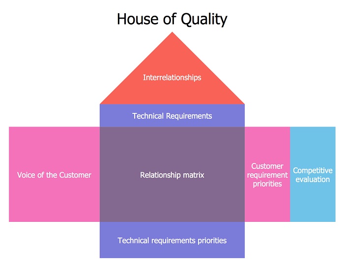 Bạn sẽ có thể hình dung đây như một ngôi nhà của chất lượng. Chúng là một ma trận trông giống như một ngôi nhà khi hoàn thành. Khi hoàn thành HOQ, các thông số kỹ thuật và ưu tiên của khách hàng được nhập vào bên trái, các thông số kỹ thuật trở thành trần nhà và sàn nhà là tầm quan trọng và tầm quan trọng tương đối của từng thông số kỹ thuật. Mái dốc biểu thị bất kỳ xung đột tiềm ẩn nào giữa bất kỳ thông số kỹ thuật nào.